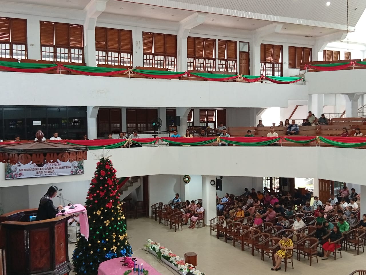 Ibadah dipimpin oleh Pdt. R. Tuhumena/T, dengan khotbah dari Lukas 1:46-56 bertema “Nyanyian Pujian Maria”, yang mengajak jemaat memandang kehadiran Kristus sebagai terang di tengah kegelapan hidup.