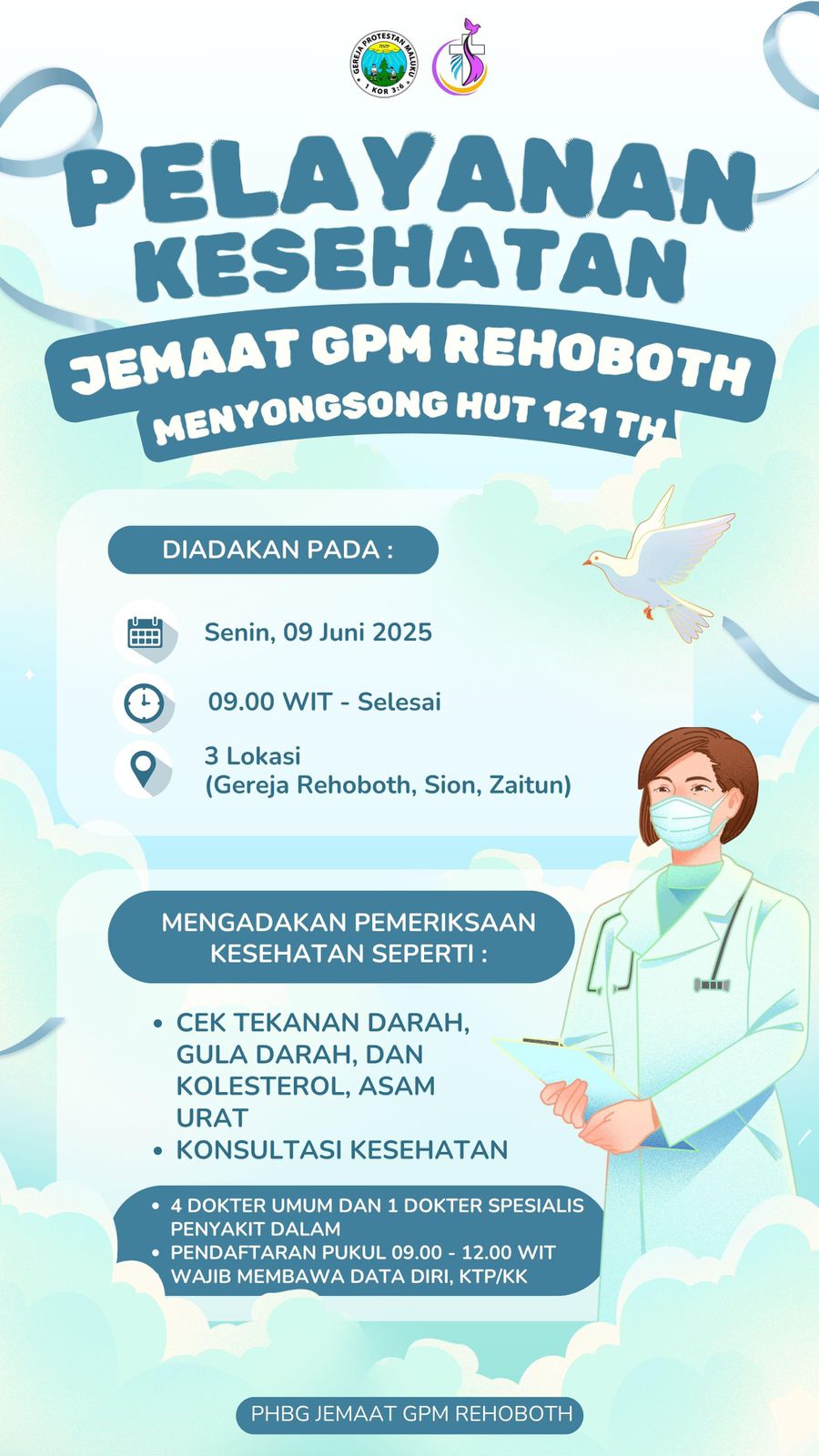 Read MoreMenyongsong HUT Jemaat GPM Rehoboth Klasis Pulau Ambon ke-121, maka akan dilaksanakan kegiatan Pelayanan Kesehatan pada hari Senin, 9 Juni